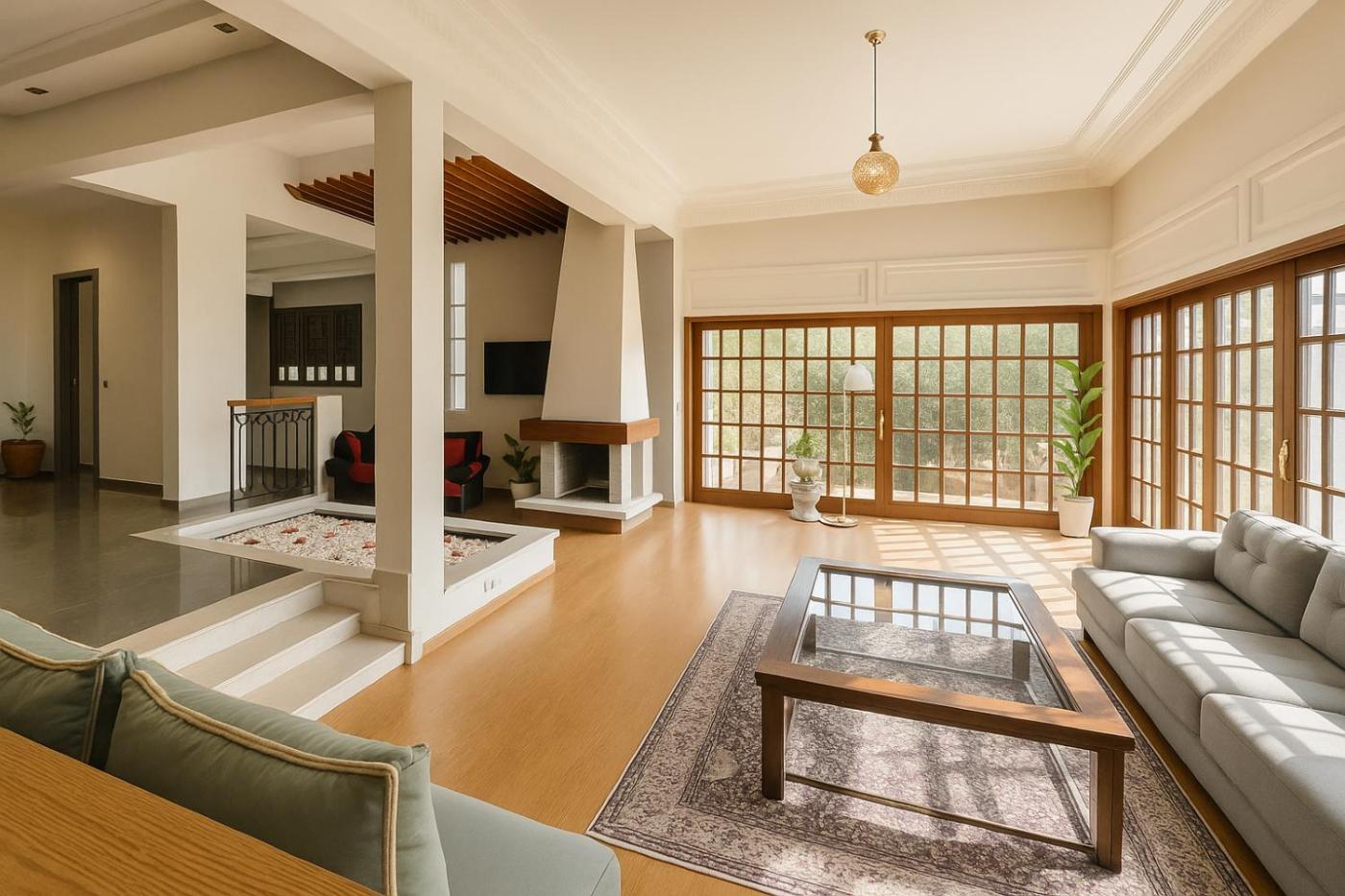 Deluxe Villa. This villas standout feature is the fireplace. This spacious villa is comprised of 3 living rooms, 4 separate bedrooms and 3 bathrooms with a shower and free toiletries. In the kitchen, guests will find a refrigerator, kitchenware, an oven and a toaster. The air-conditioned villa offers a flat-screen TV with streaming services, a washing machine, a private entrance, a coffee machine as well as garden views. The unit offers 13 beds.