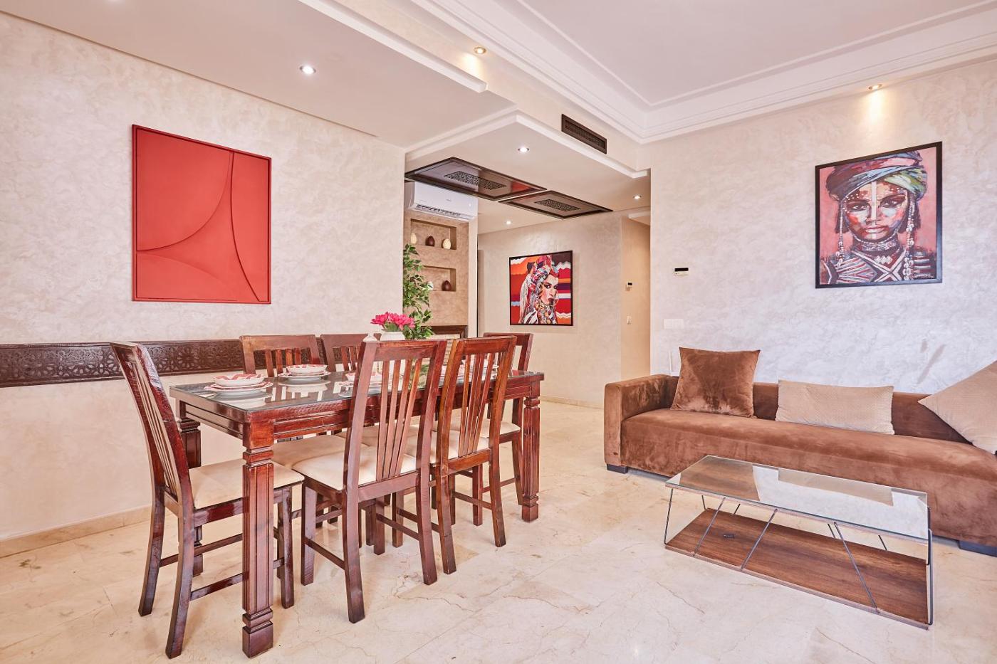 Featuring air-conditioned accommodation with a patio, 2BR Getaway Near and Seaside Promenade isin Casablanca. This apartment offers free private parking, a 24-hour front desk and free WiFi. The accommodation features a lift, full-day security and luggage storage for guests.