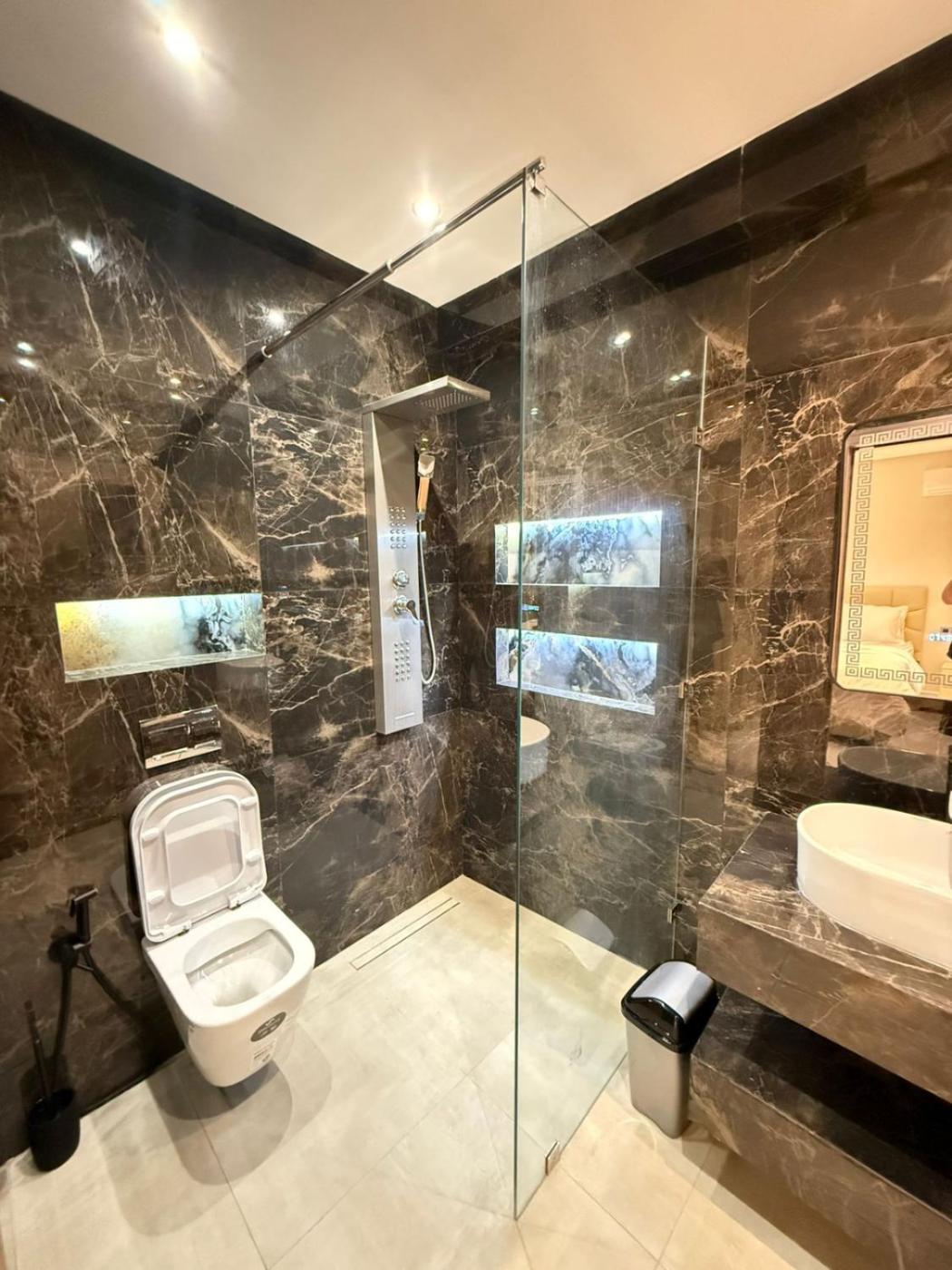 Two-Bedroom Apartment. Guests will have a special experience as this apartment features a fireplace. Featuring a private entrance, this air-conditioned apartment is comprised of 1 living room, 2 separate bedrooms and 2 bathrooms with a walk-in shower and a bidet. The well-fitted kitchen features a stovetop, a refrigerator, kitchenware and an oven. The spacious apartment offers a washing machine, soundproof walls, a tea and coffee maker, a flat-screen TV with satellite channels, as well as city views. The unit offers 3 beds.