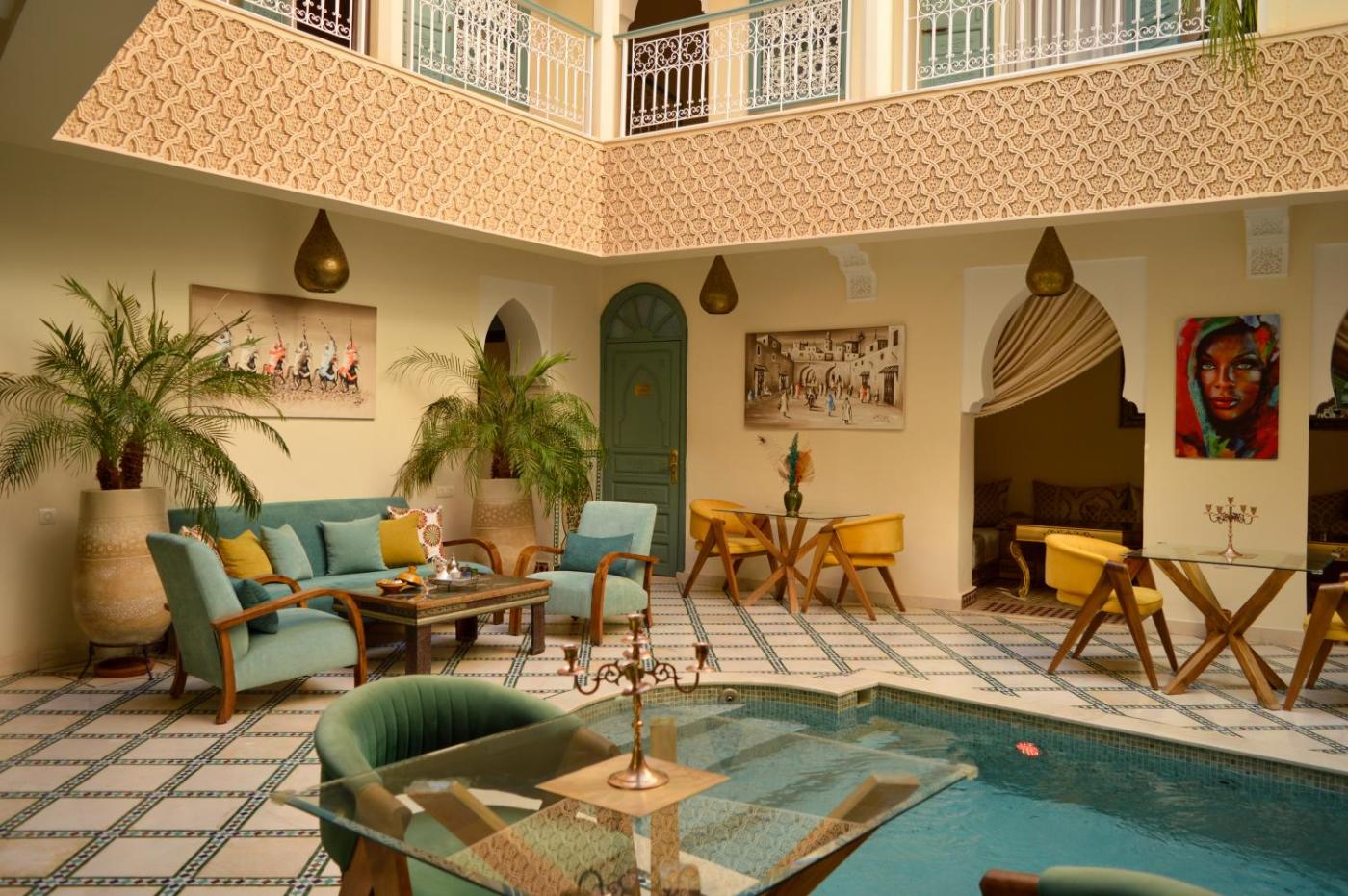 Riad Jalina provides accommodation500 metres from the centre of Marrakech and features an outdoor swimming pool and a shared lounge. The property is located 700 metres from Djemaa El Fna, 1.1 km from Koutoubia Mosque and less than 1 km from Le Jardin Secret. The riad offers pool views, a sun terrace, a 24-hour front desk, and free WiFi is available throughout the property.