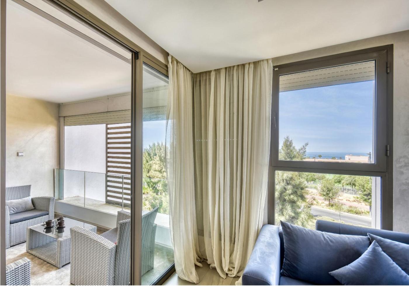 Deluxe One-Bedroom Apartment with Ocean View. Featuring a private entrance, this air-conditioned apartment comprises 1 living room, 1 separate bedroom and 1 bathroom with a walk-in shower and a hairdryer. Meals can be prepared in the kitchen, which comes with a refrigerator, kitchenware, an oven and a microwave. The spacious apartment provides a washing machine, soundproof walls, a tea and coffee maker, a seating area and a flat-screen TV with cable channels. The unit offers 3 beds.