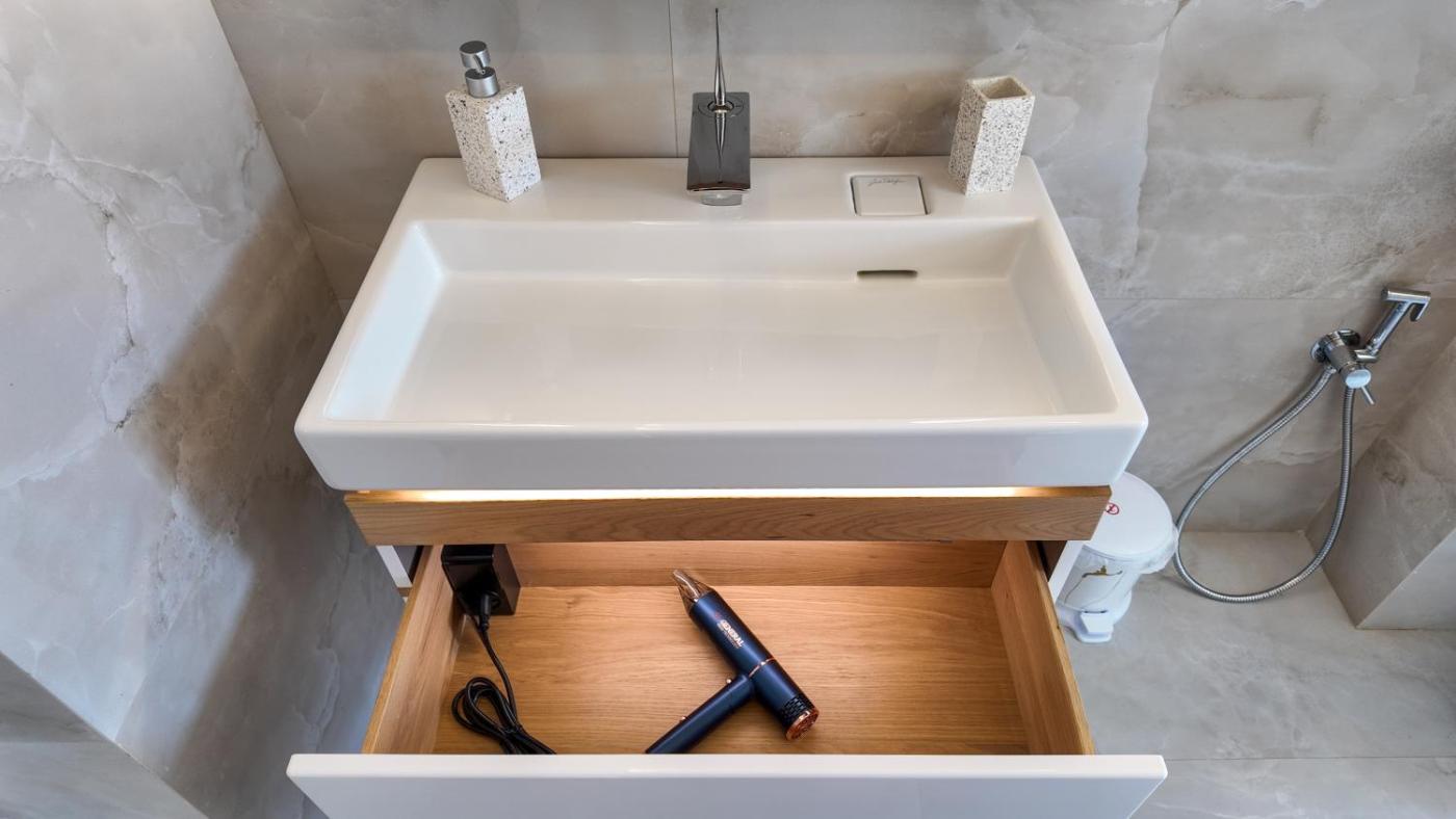 Two-Bedroom Deluxe Apartment. Boasting a private entrance, this spacious apartment also comes with 1 living room, 2 separate bedrooms and 1 bathroom with a walk-in shower. The kitchen features a stovetop, a refrigerator and kitchenware. The air-conditioned apartment features a flat-screen TV with streaming services, a washing machine, a tea and coffee maker, a wardrobe as well as sea views. The unit has 4 beds.